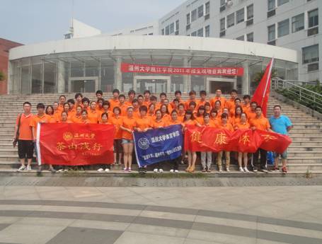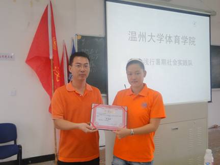 2011年7月6日上午9点,温州大学体育学院在北校一号楼101教室举行了本学期暑期社会实践队出征仪式。到场的有体育学院党总支书记杨志敏,体育学院学生科科长高顺德,体育学团委冯建军老师,各实践队指导老师与各实践队队长及部分队员代表。仪式由高顺德老师主持。