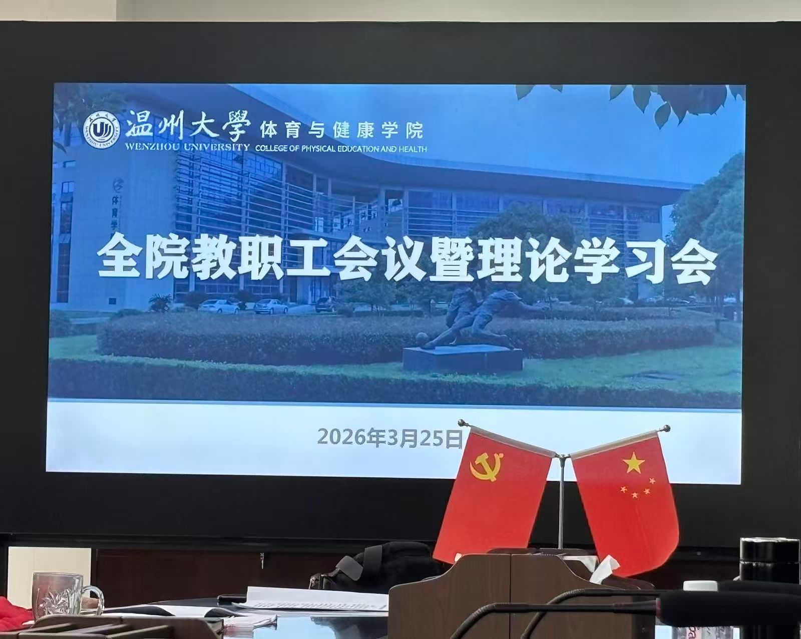 院长赵海波以《践行“斌达律协恒”体育精神 书写立德树人时代答卷》为题,为全体教职工讲授了一堂思想深刻、精神昂扬的师德专题党课。他紧密结合学院学科特色与育人实际,深入阐释了“文武兼备、通达成长、自律守规、协作共进、持之以恒”的“斌达律协恒”精神要义。他号召全体教师要将体育精神的硬核力量深度融入教书育人全过程,以体育人、以德铸魂,在立德树人的主阵地上坚守初心、超越自我,以昂扬姿态助力学院高质量发展。