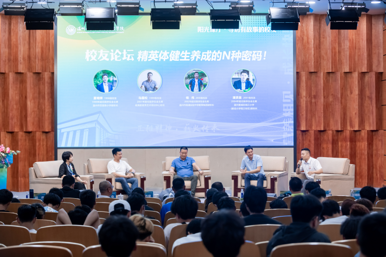 在当天的校友论坛上,1998级校友、温州市百里路小学副校长夏明辉分享了《不要输在起跑线上》,讲述能让职场菜鸟“脱颖而出”的五项工作标准;1999级校友、瓯海麦麦秀艺术培训中心校长马国松以《体育人的“移情别恋”》为题,分享自身从不同教育领域转型中可迁移的核心素养;2000级校友、温州市南浦实验中学教育集团副校长杨伟同学《一个“不务正业”的体育人》,讲述一个体育生在大数据时代的融合成长和深度实践……他们以不同维度分享的奋斗成长故事,揭示了体育精英生的成长密码,成为学生眼里最有料的劳育教学课。