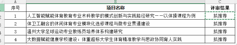 根据《体育与健康学院关于组织申报2026年本科教学改革项目“揭榜挂帅”专项的通知》要求,经各系部选题、个人申报、系部组织评审、学院教学委员会审核等程序,拟推荐以下4个项目参评2026年校级教学改革项目,公示期为4月7日-4月9日,如有异议,请在公示期内反馈。联系人金震,联系电话:620382。